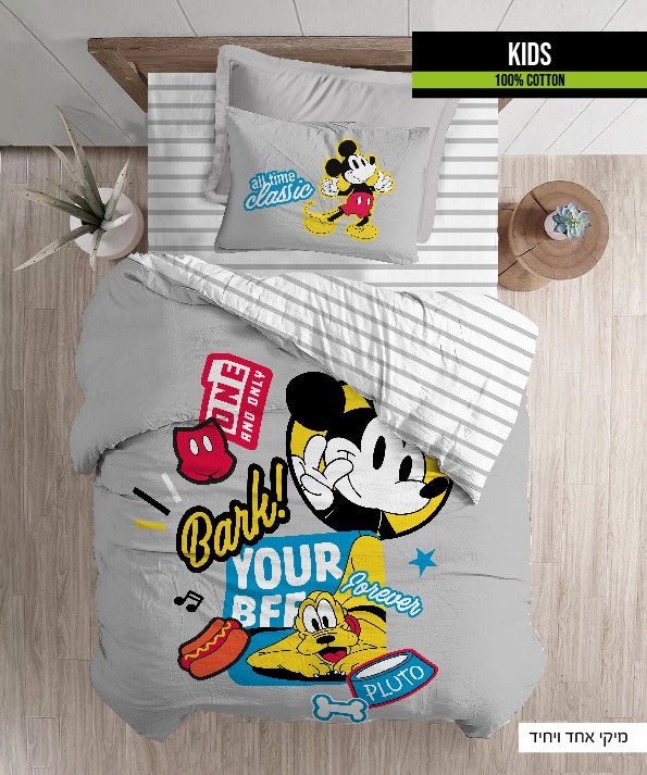 סט מצעים למיטת יחיד דגם מיקי אחד ויחיד