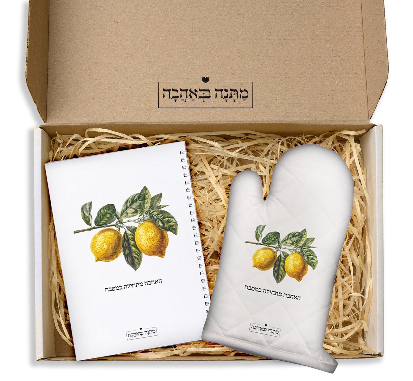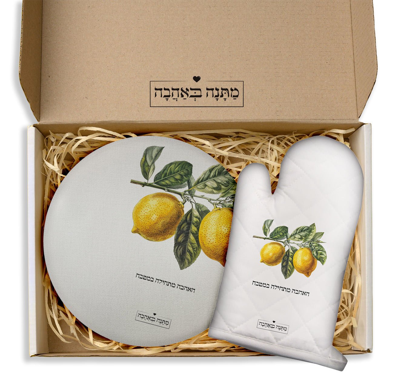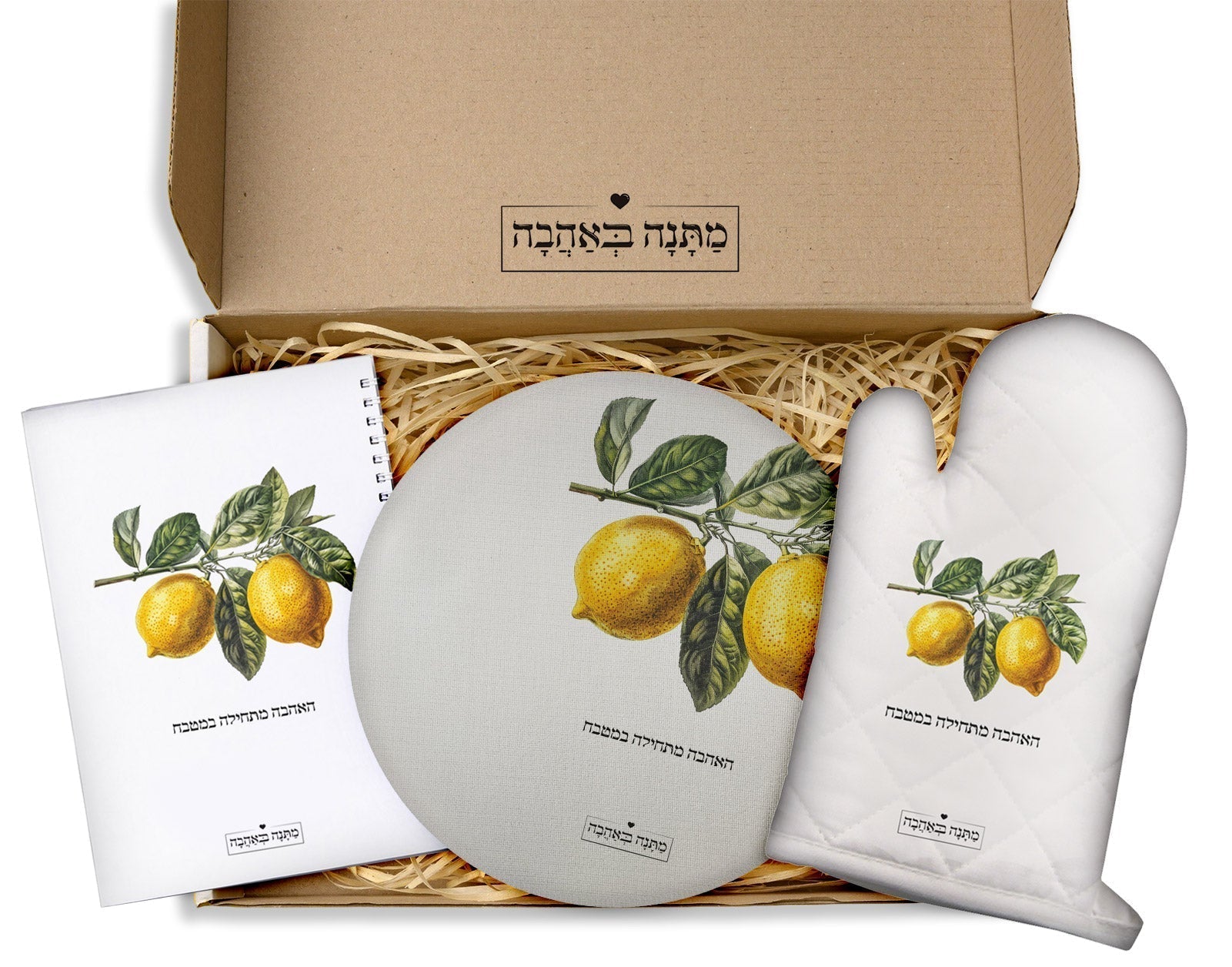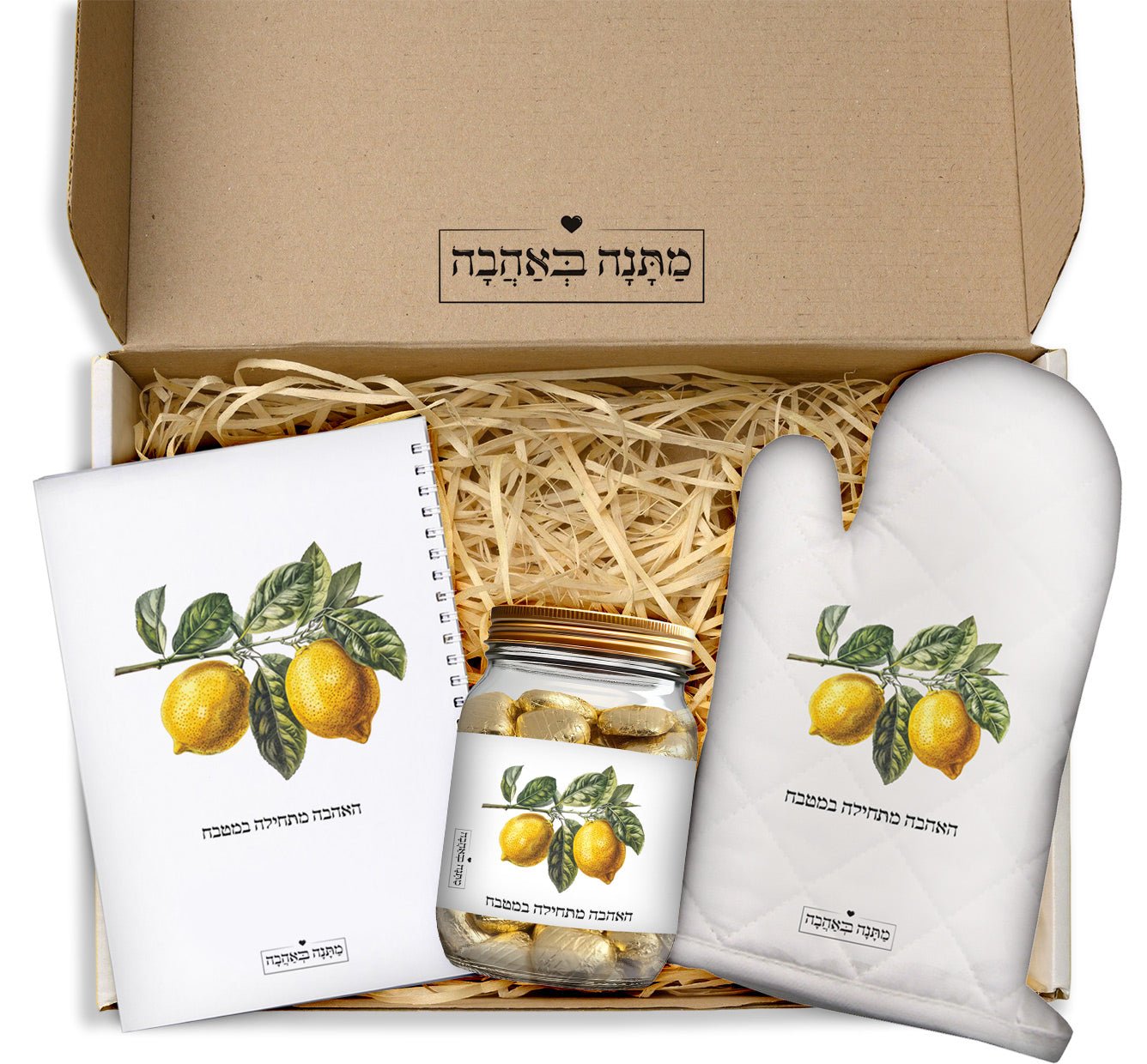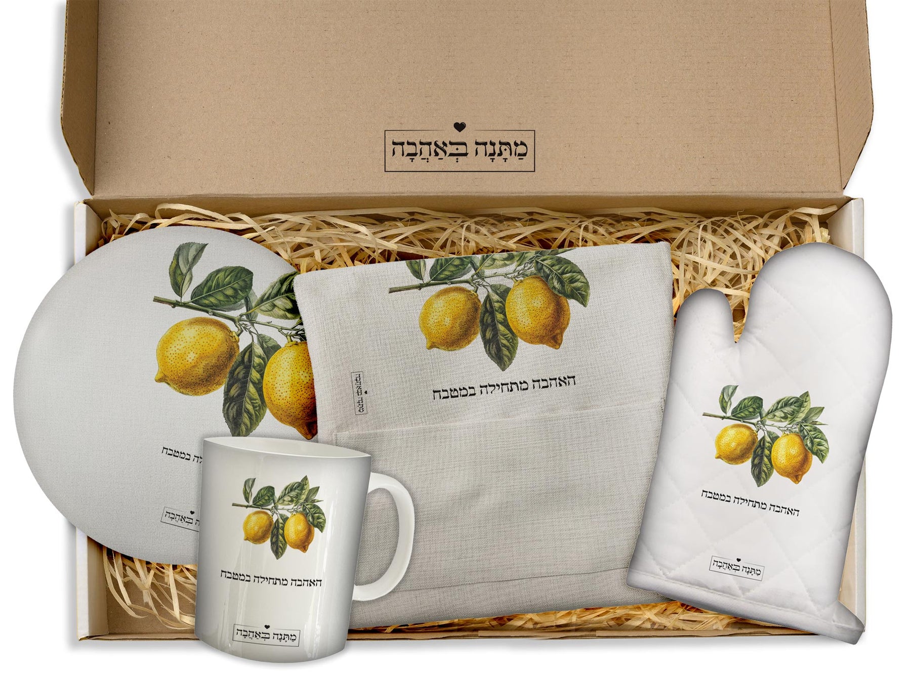 מארז מתנה למטבח כולל שם והקדשה אישית - דגם לימונים (כל הגדלים)