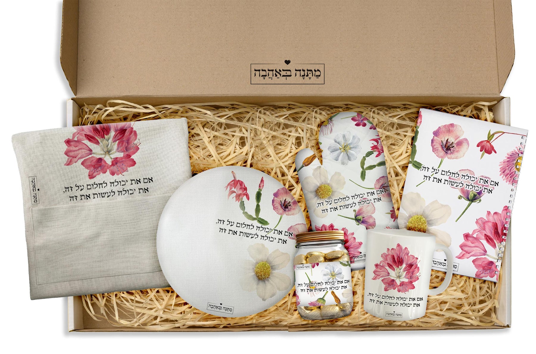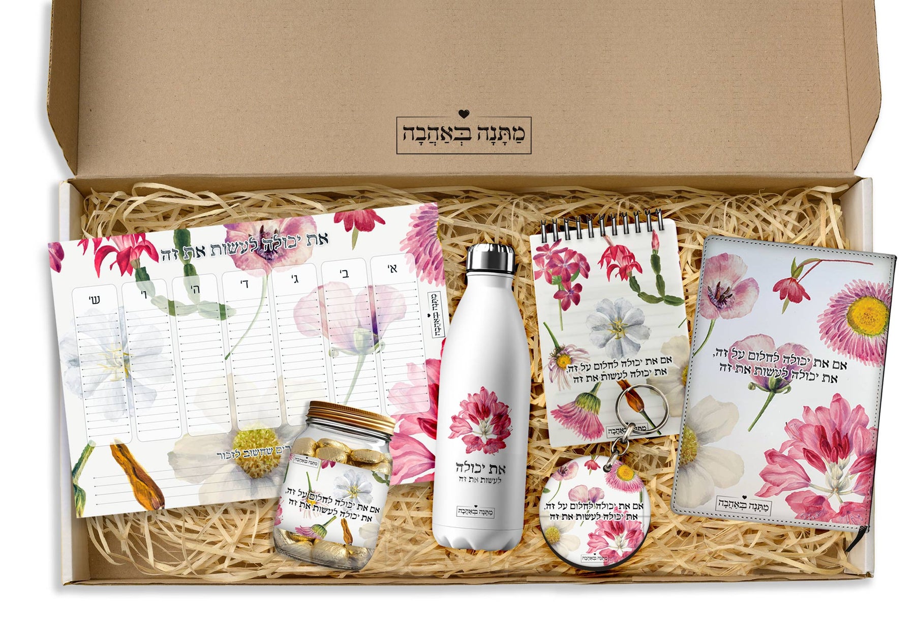 מארז מתנה לאישה כולל שם והקדשה אישית - דגם פרחי בר (כל הגדלים) - Baby Coupon
