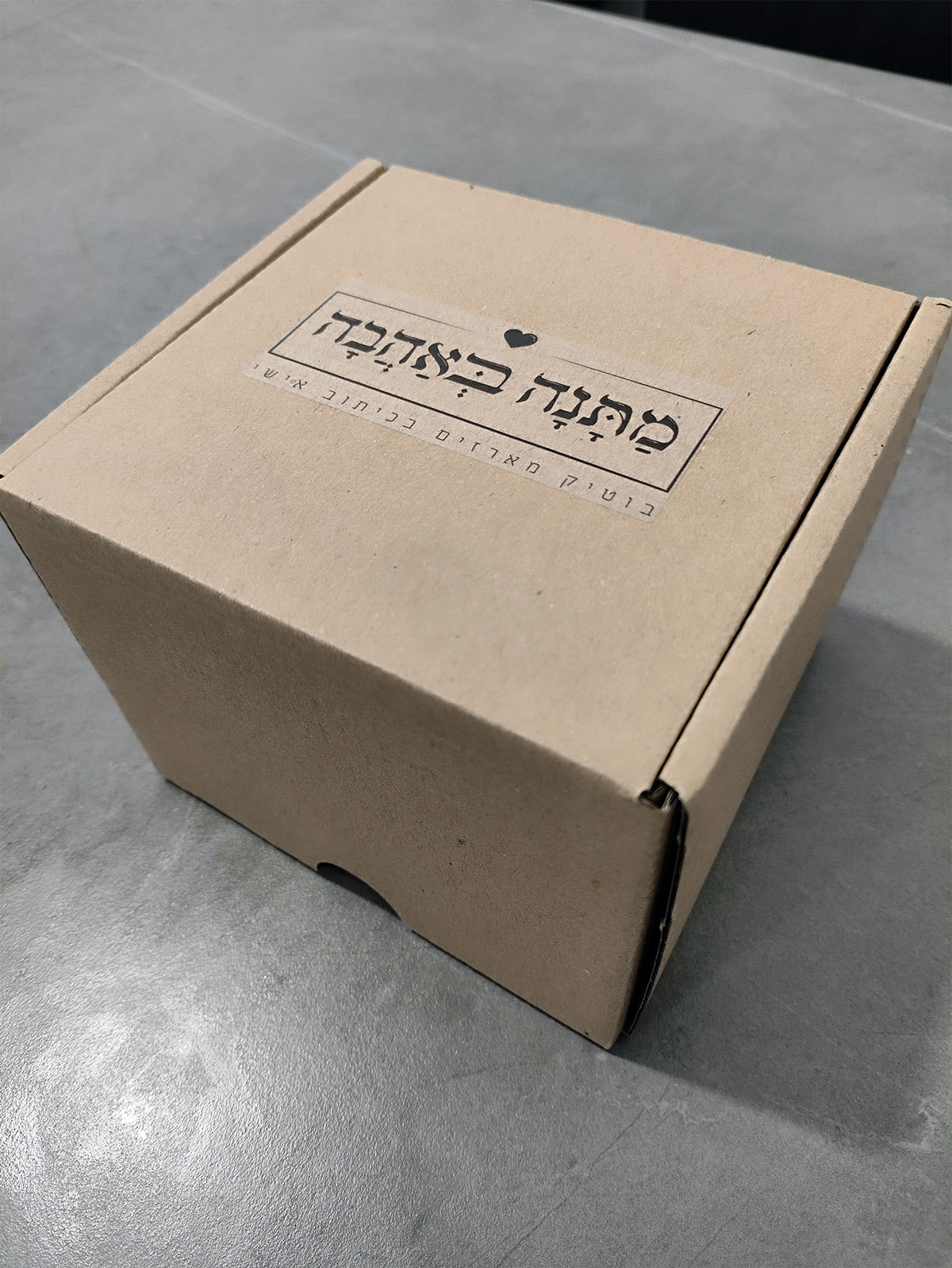 3. קופסה מהודרת ממותגת מבית "מתנה באהבה" עם קש