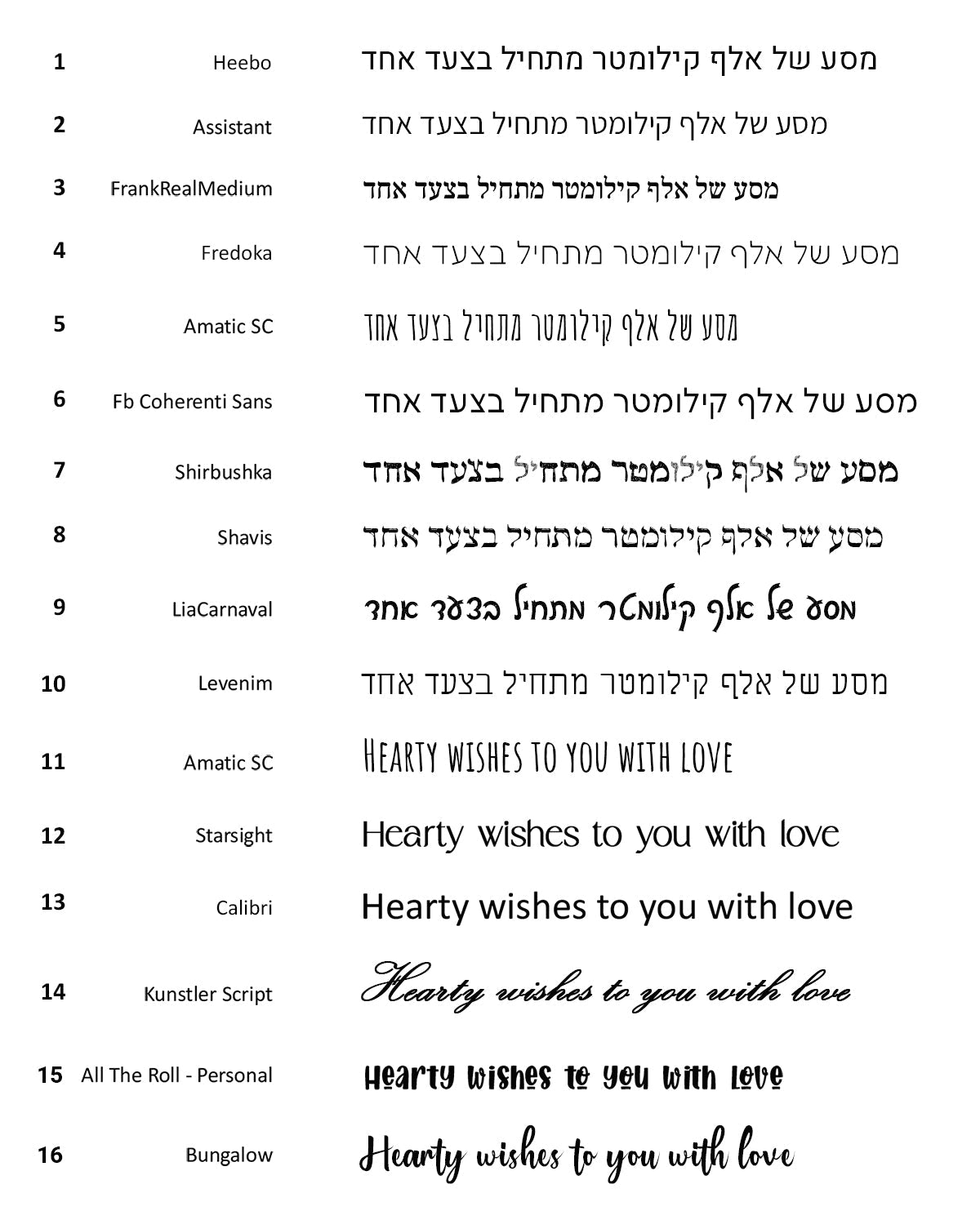פונטים לבחירה: יש לרשום את מספר הפונט המופיע בצד שמאל של קטלוג הפונטים