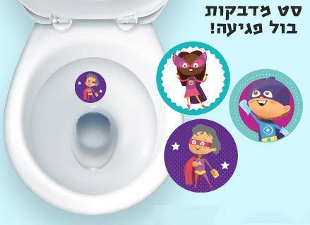 סט 12 מדבקות בול פגיעה מיוחדות לשירותים- דגם גיבורי על