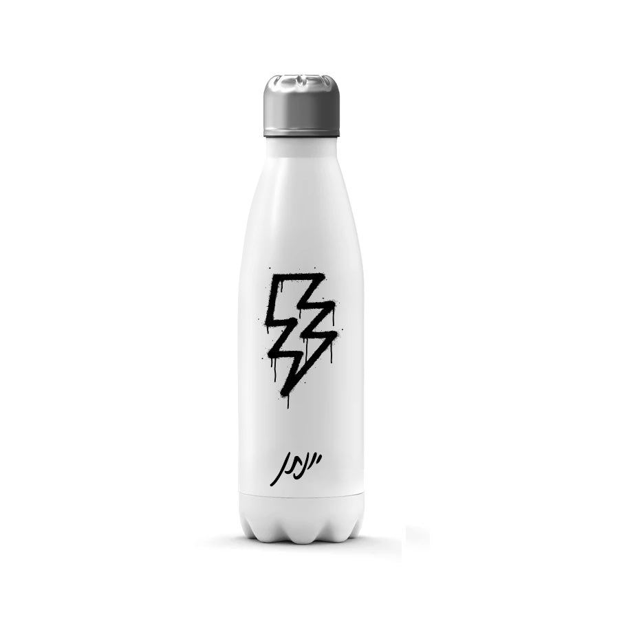 בקבוק תרמי איכותי שומר קור / חום עם שם אישי- דגם גרפיטי שחור לבן ברק