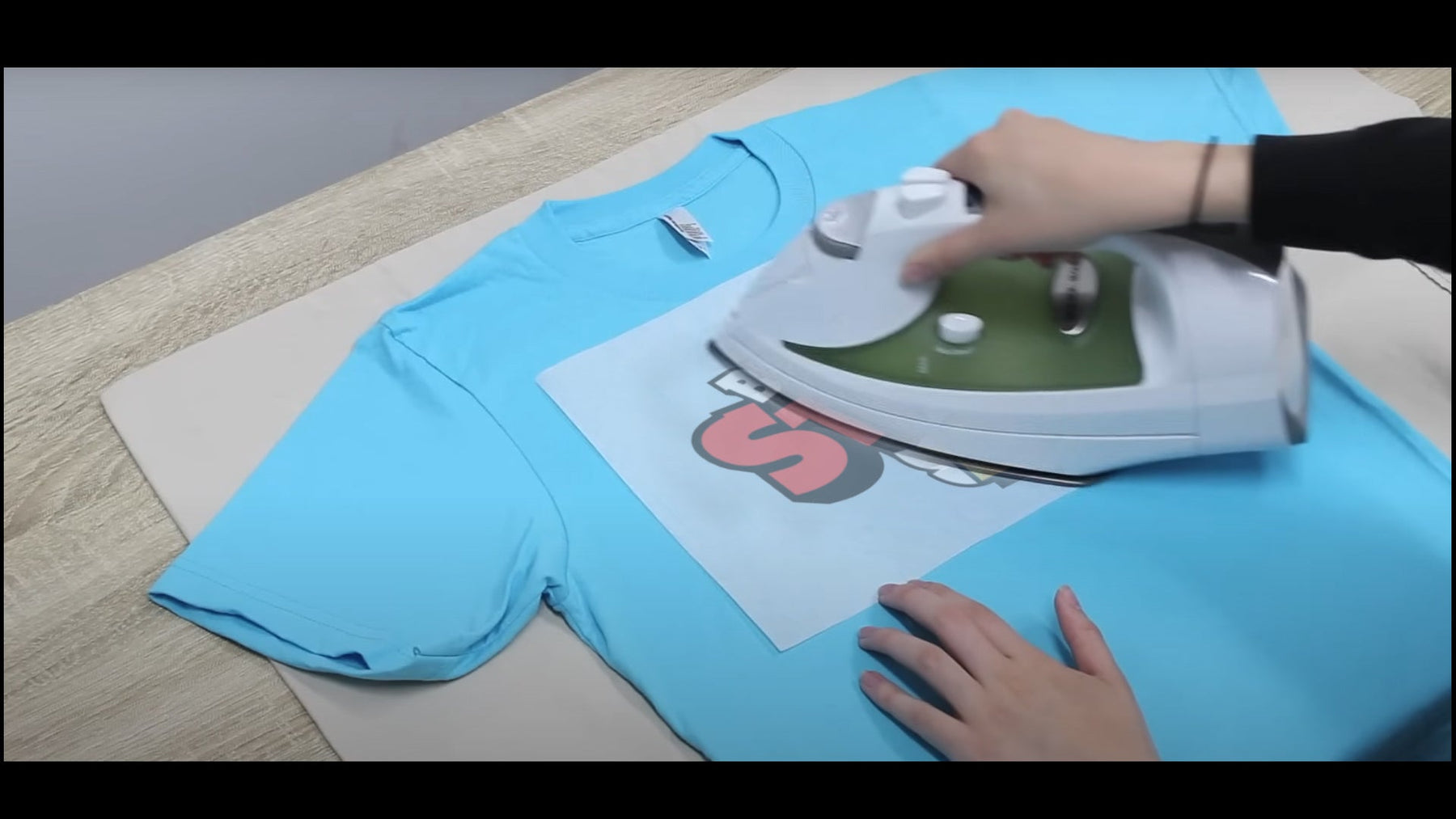 יש להניח את המדבקה על הבגד, יש להניח על המדבקה נייר אפייה ולגהץ על הנייר.