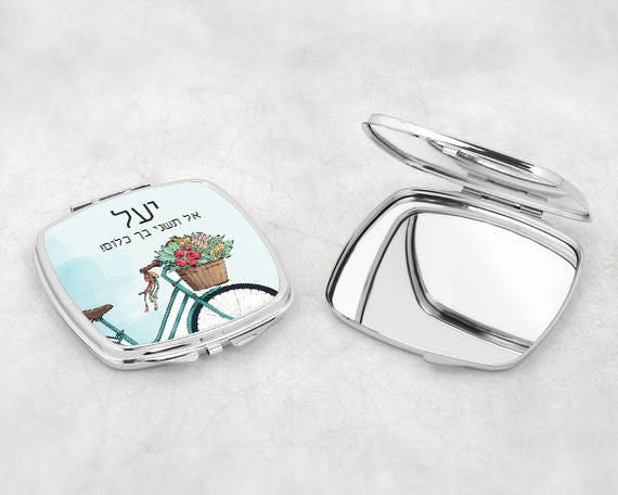 מראת כיס מעוצבת עם שם אישי ואפשרות להקדשה- אופניים