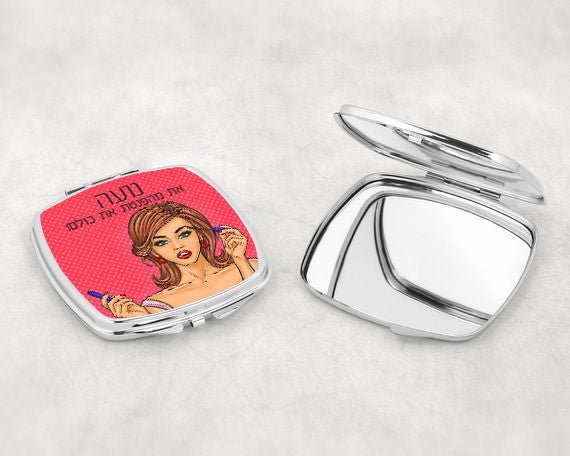 מראת כיס מעוצבת עם שם אישי ואפשרות להקדשה- מסקרה