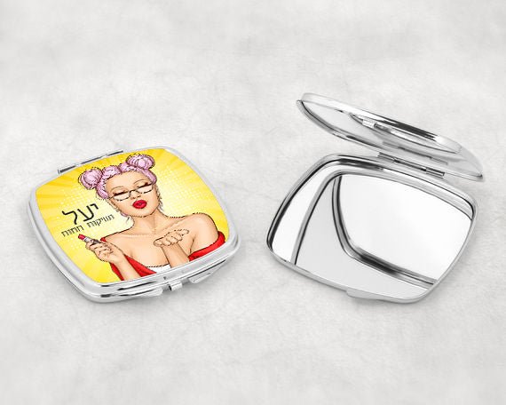 מראת כיס מעוצבת עם שם אישי ואפשרות להקדשה- נשיקות