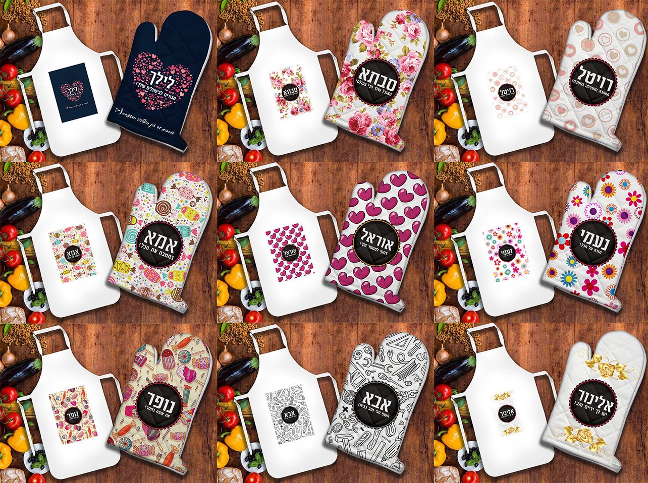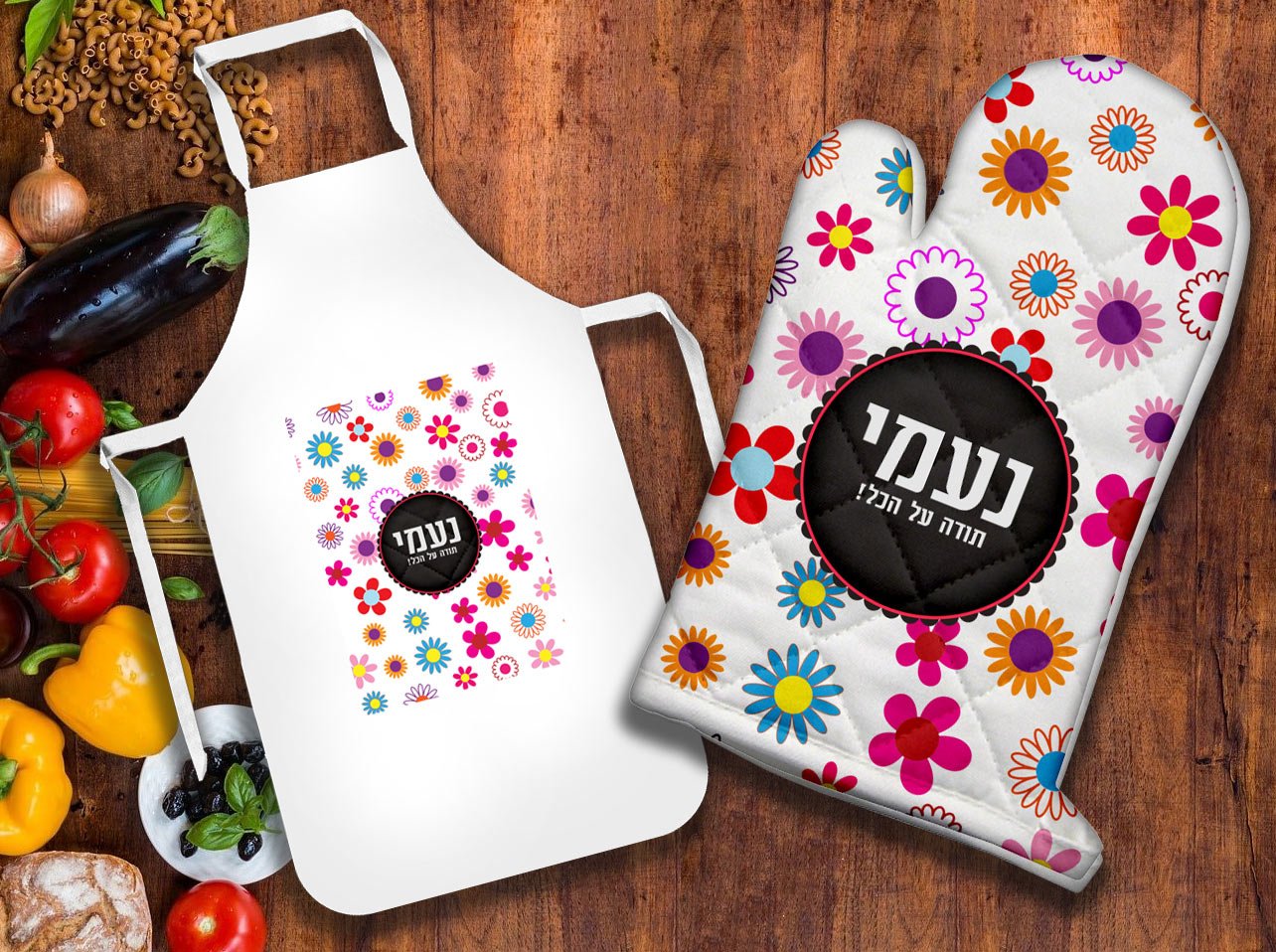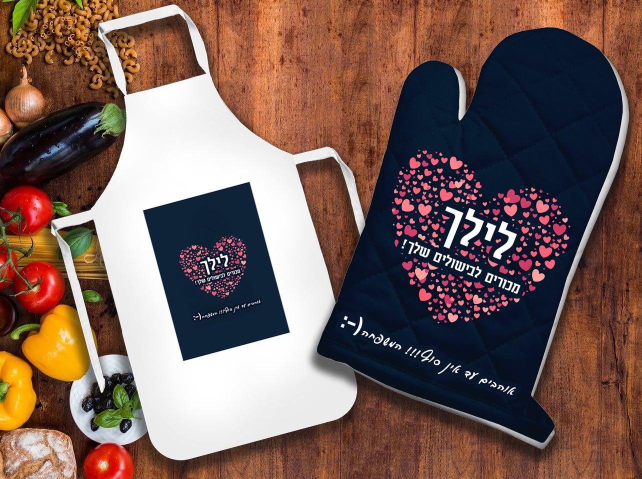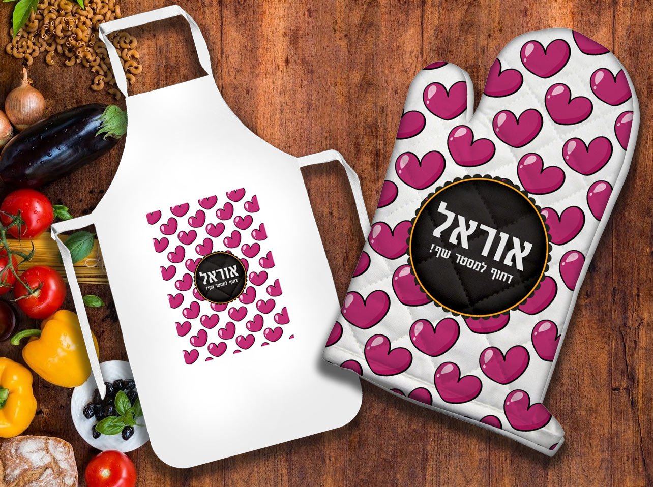 סט כפפה לתנור+ סינר מבוגרים עם שם אישי
