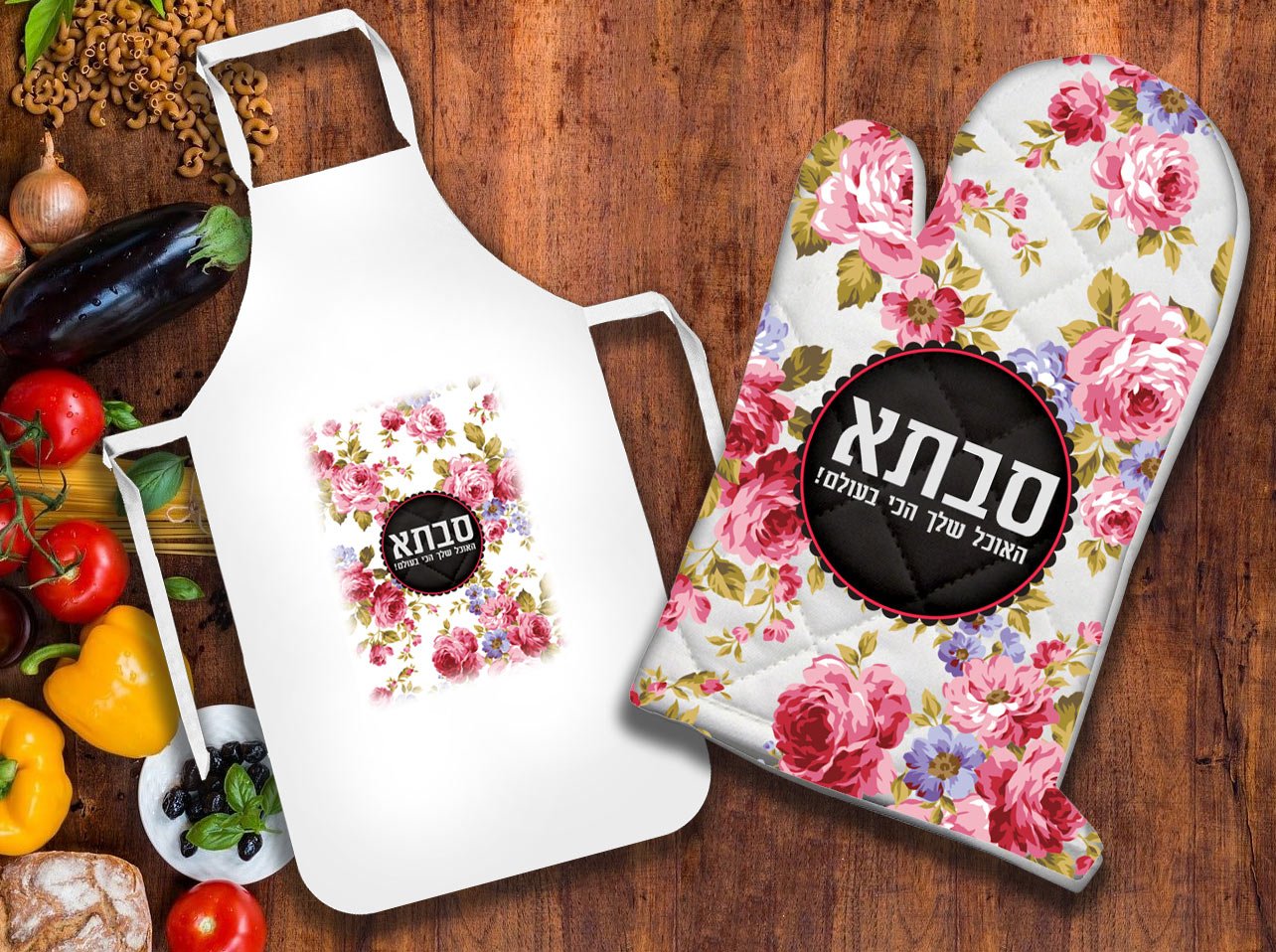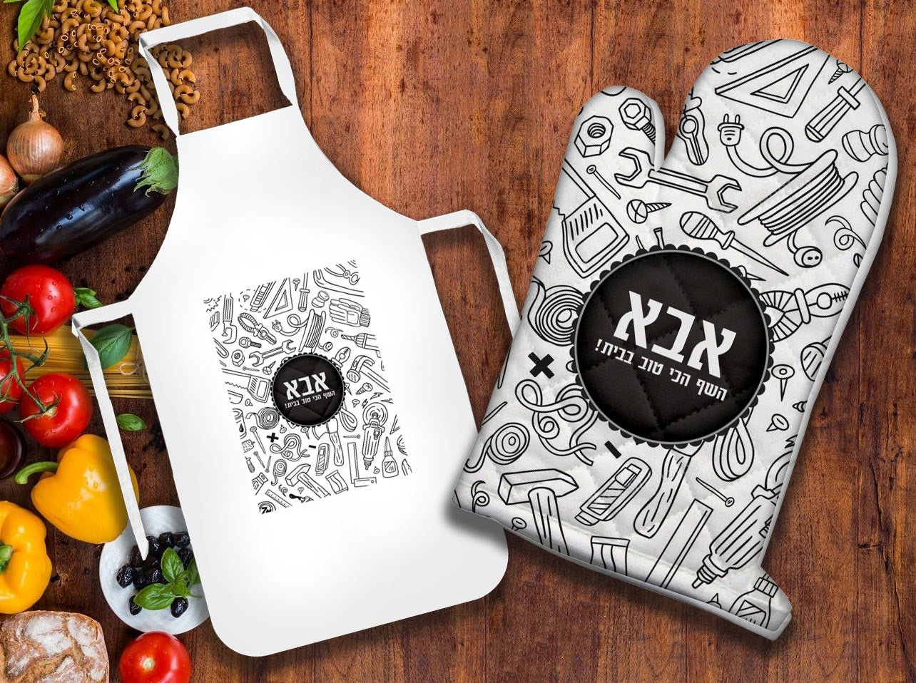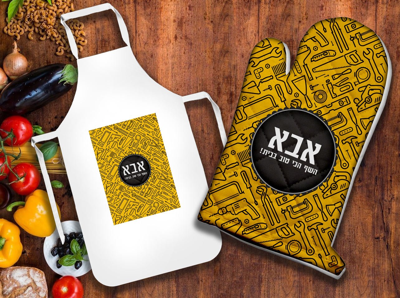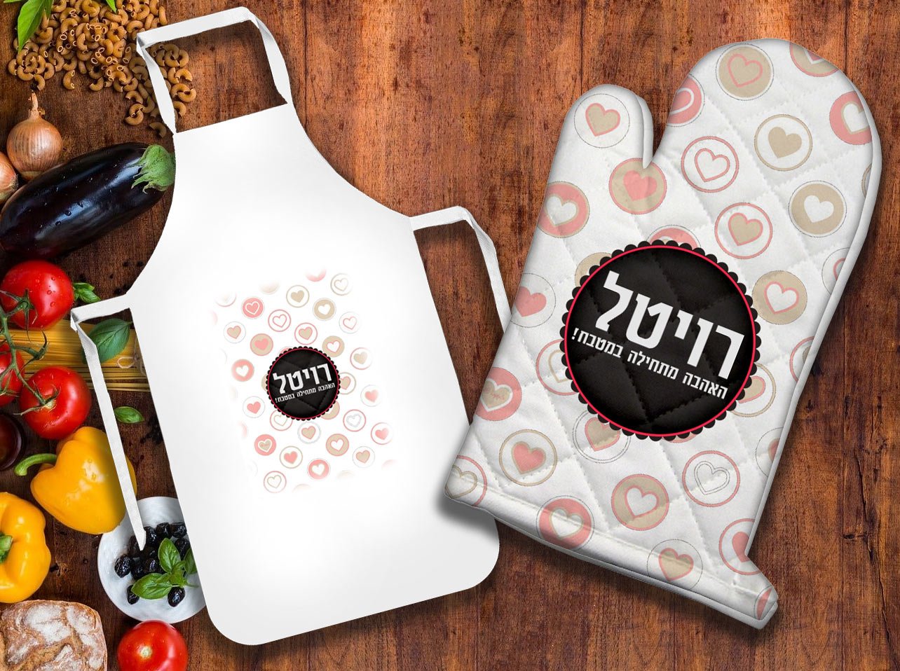 סט כפפה לתנור+ סינר מבוגרים עם שם אישי