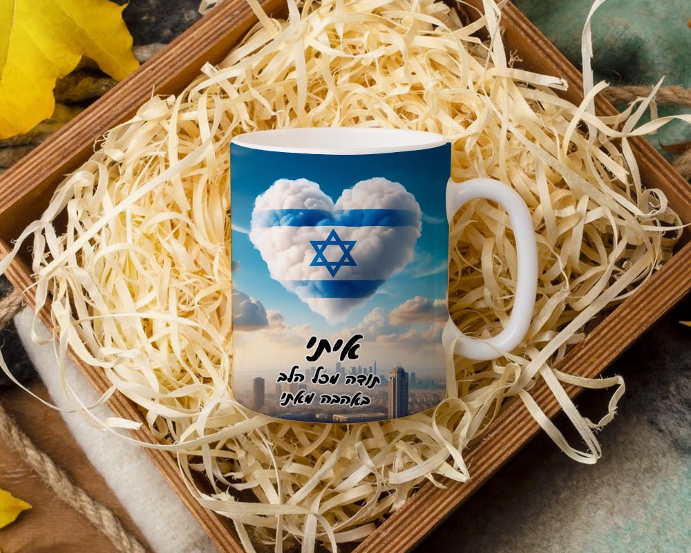 ספל קפה בעיצוב "ענן הלב" כולל הקדשה אישית