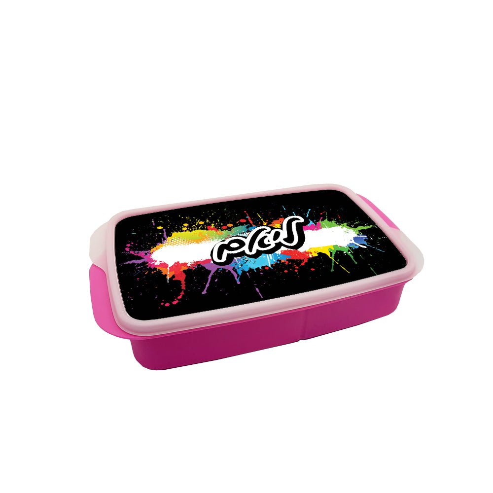 קופסת אוכל מחולקת ומעוצבת עם שם אישי- דגם כתם צבע