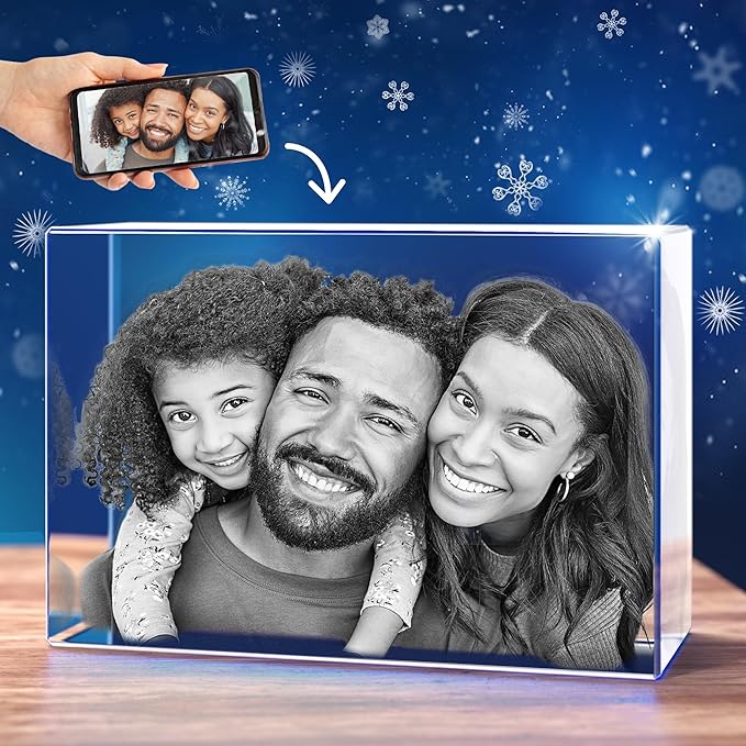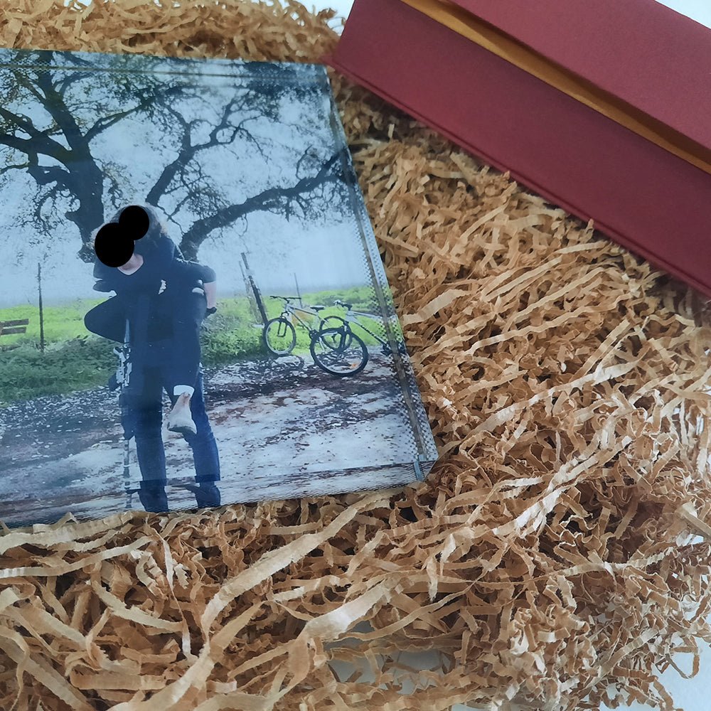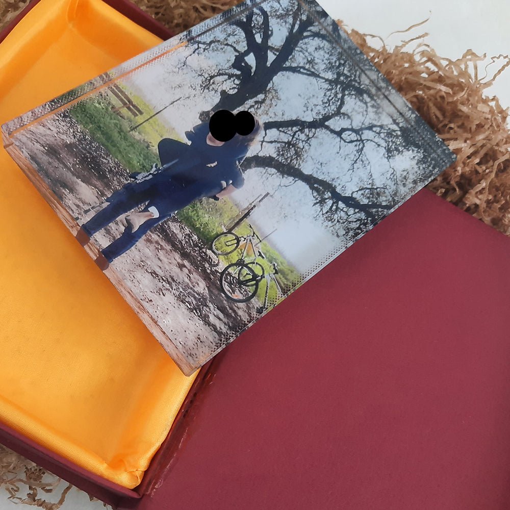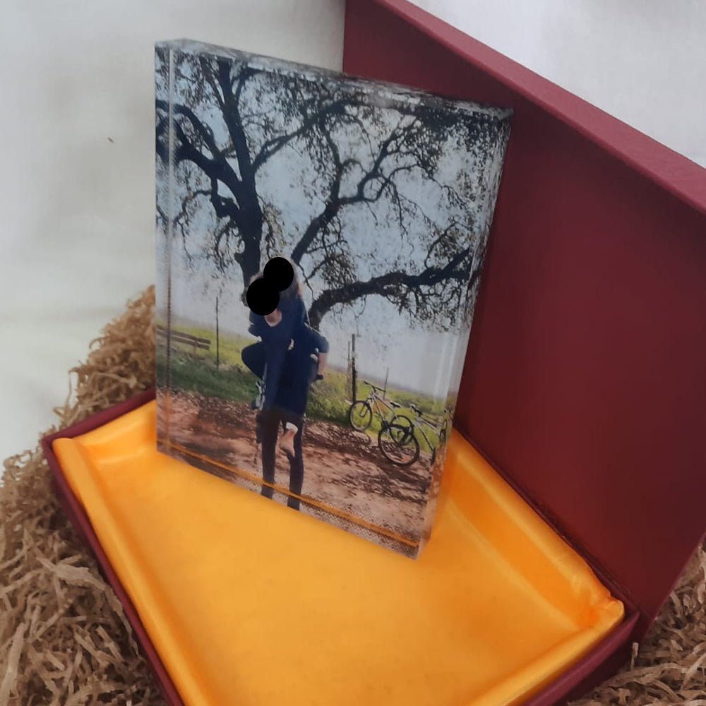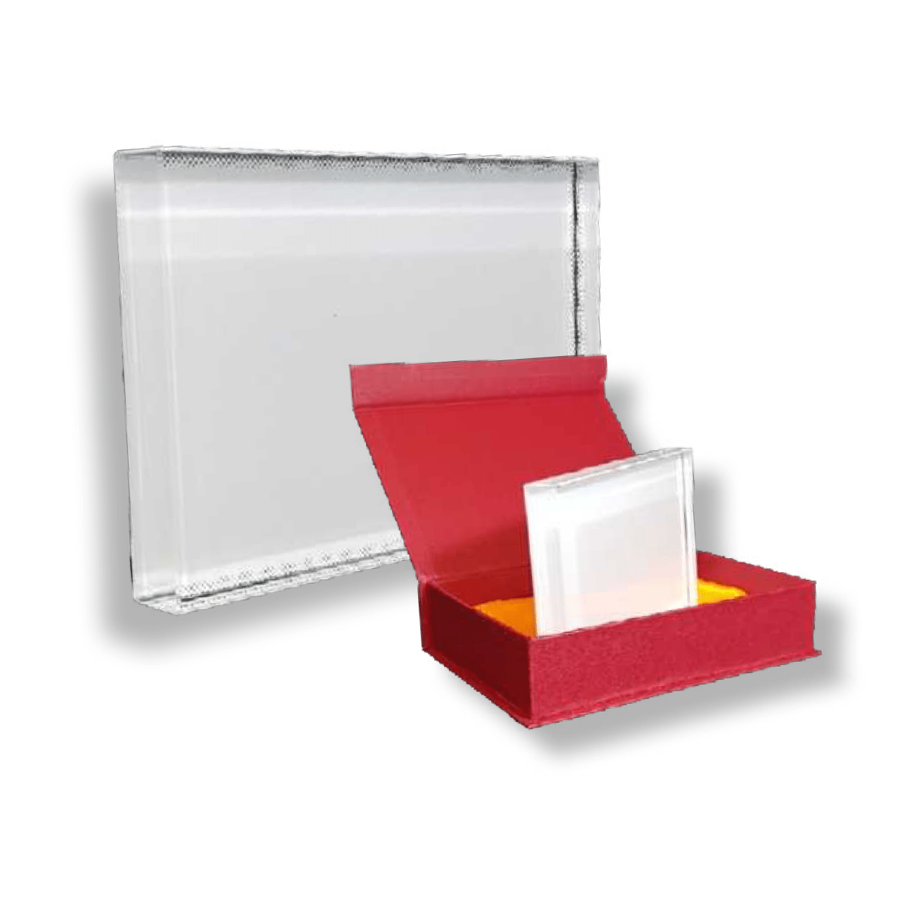 קריסטל זכוכית עם תמונה והקדשה אישית- פינות ישרות