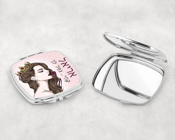 מראת כיס מעוצבת עם שם אישי ואפשרות להקדשה- מלכה