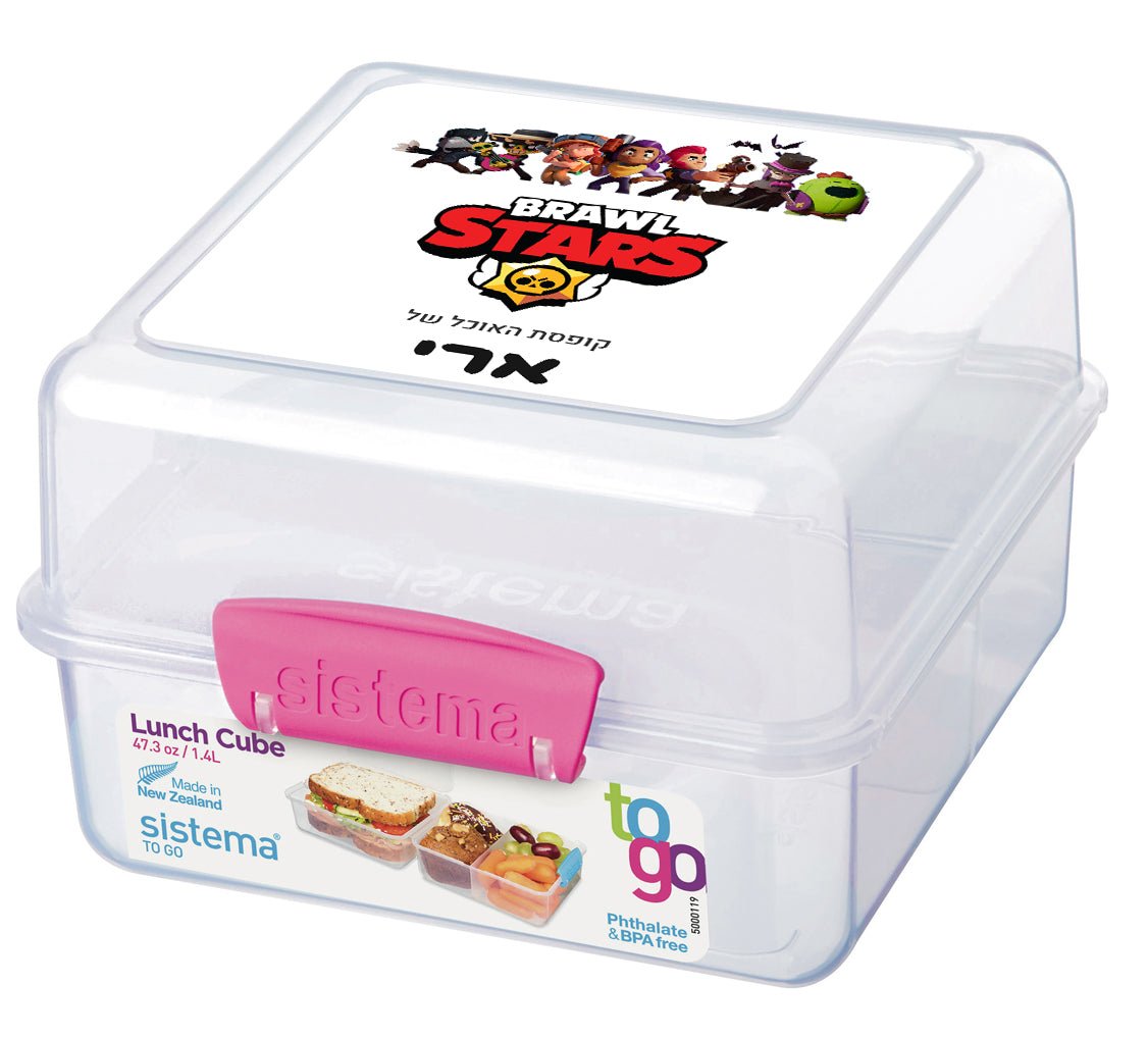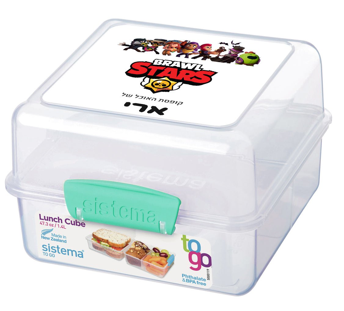 קופסת אוכל איכותית מבית סיסטמה, עם שם הילד/ה.