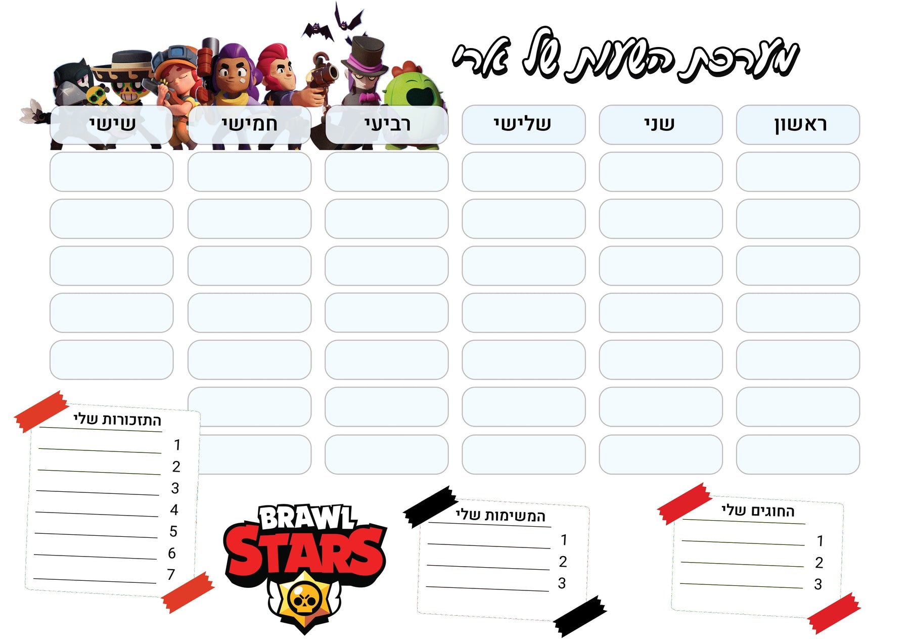 סט מוצרים עם שם הילד/ה בעיצוב בראול סטארס- כל הדמויות 2