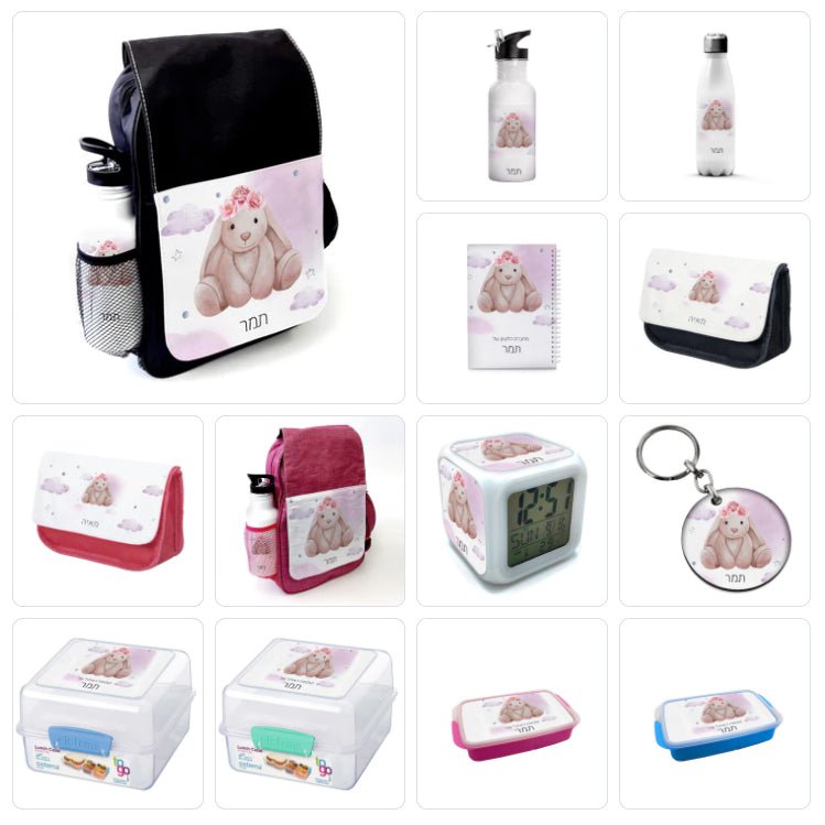 סט מוצרים עם שם הילד/ה בעיצוב ארנבת