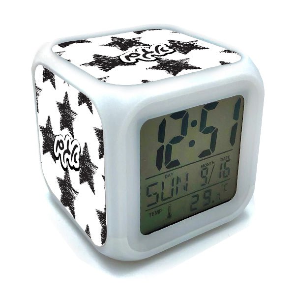 שעון מעורר חכם:צבע בסיס השעון: לבןהשעון כולל 3 צדדים מעוצבים בעיצוב זהה.גודל שעון: 7.9*7.9*7.8 ס"מ