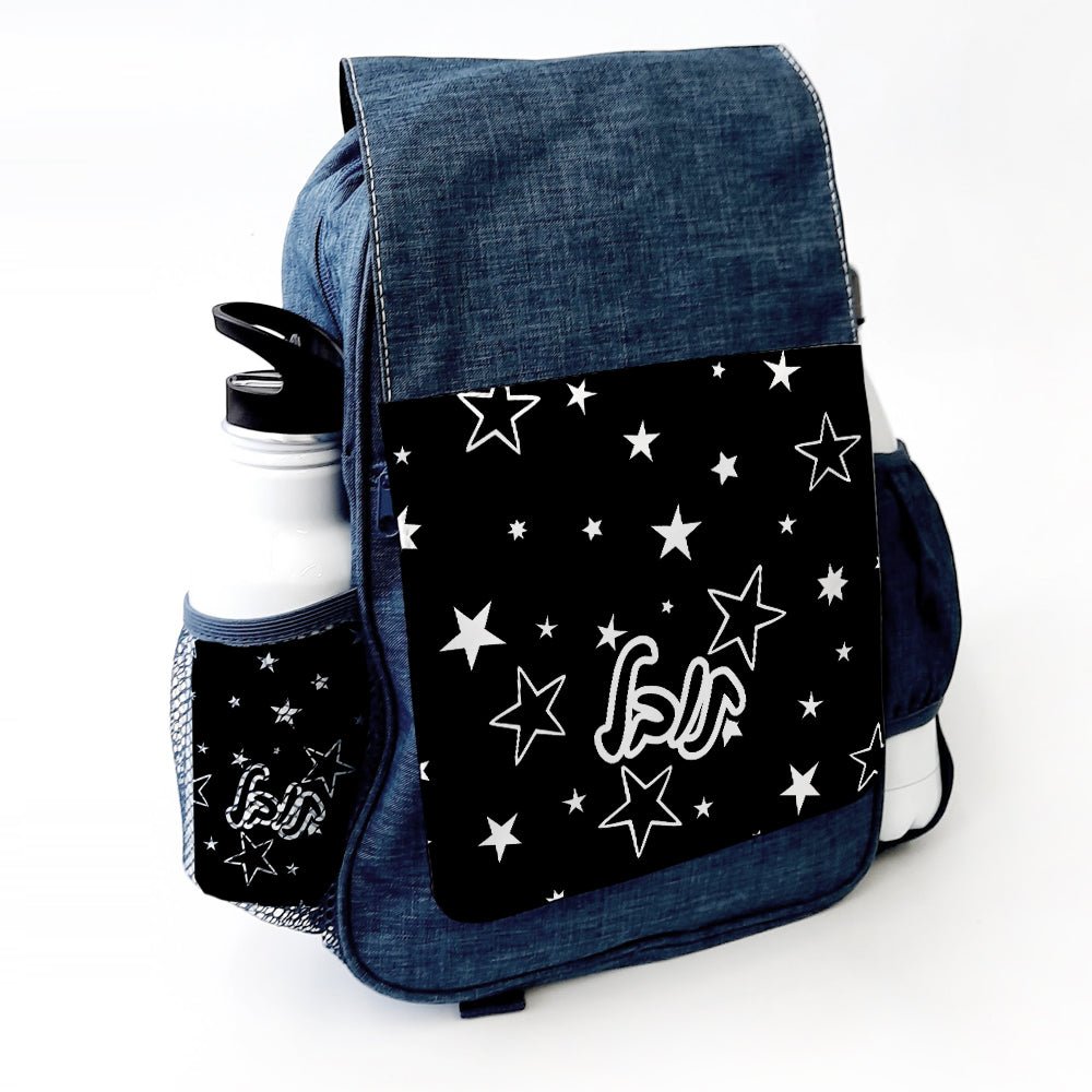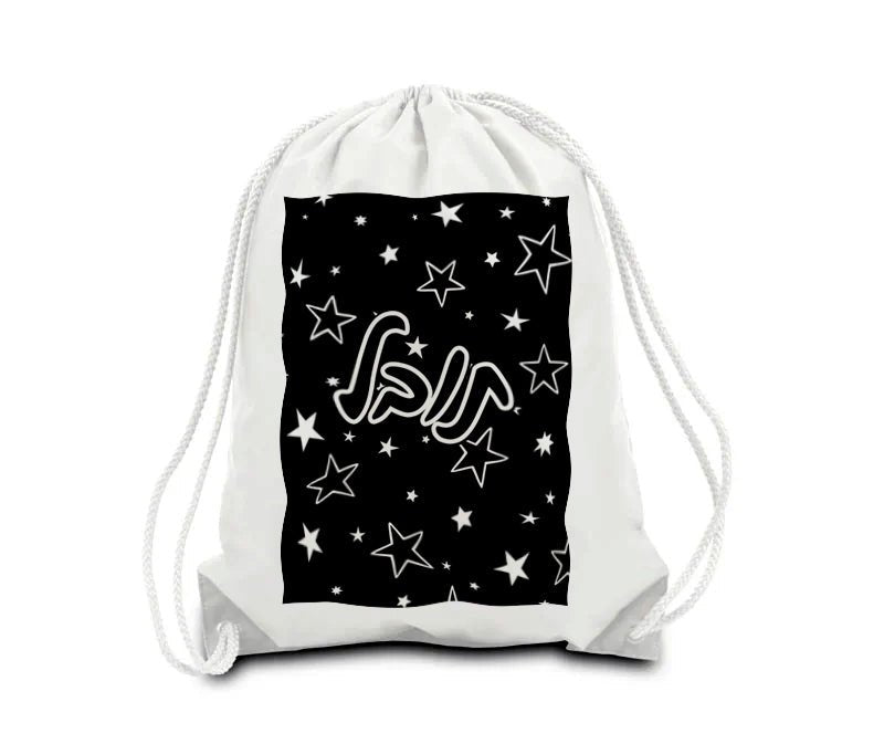 סט מוצרים עם שם הילד/ה בעיצוב כוכבים שחור לבן