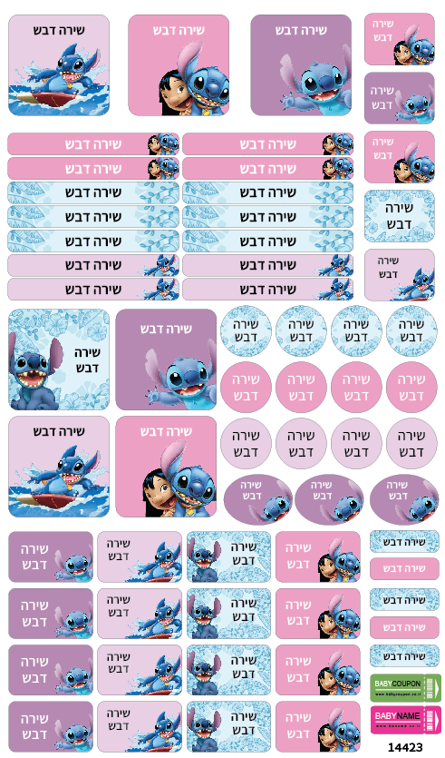 סט מוצרים עם שם הילד/ה בעיצוב סטיץ'