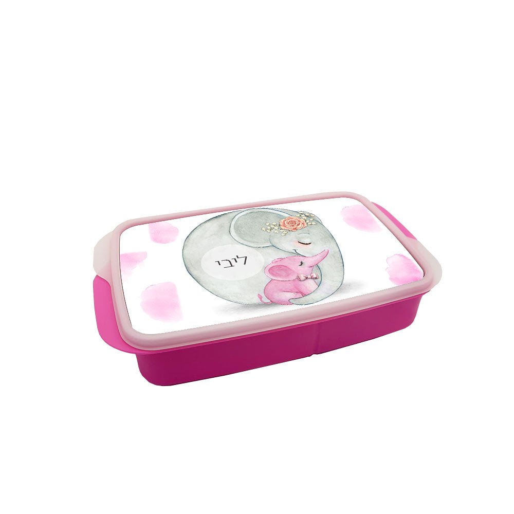 סט מוצרים עם שם הילד/ה בעיצוב פילים ורוד