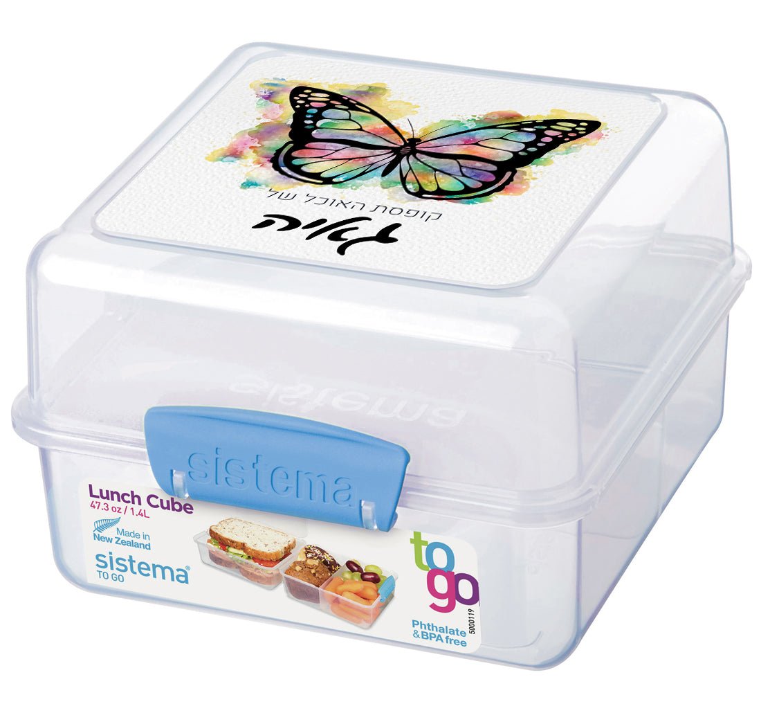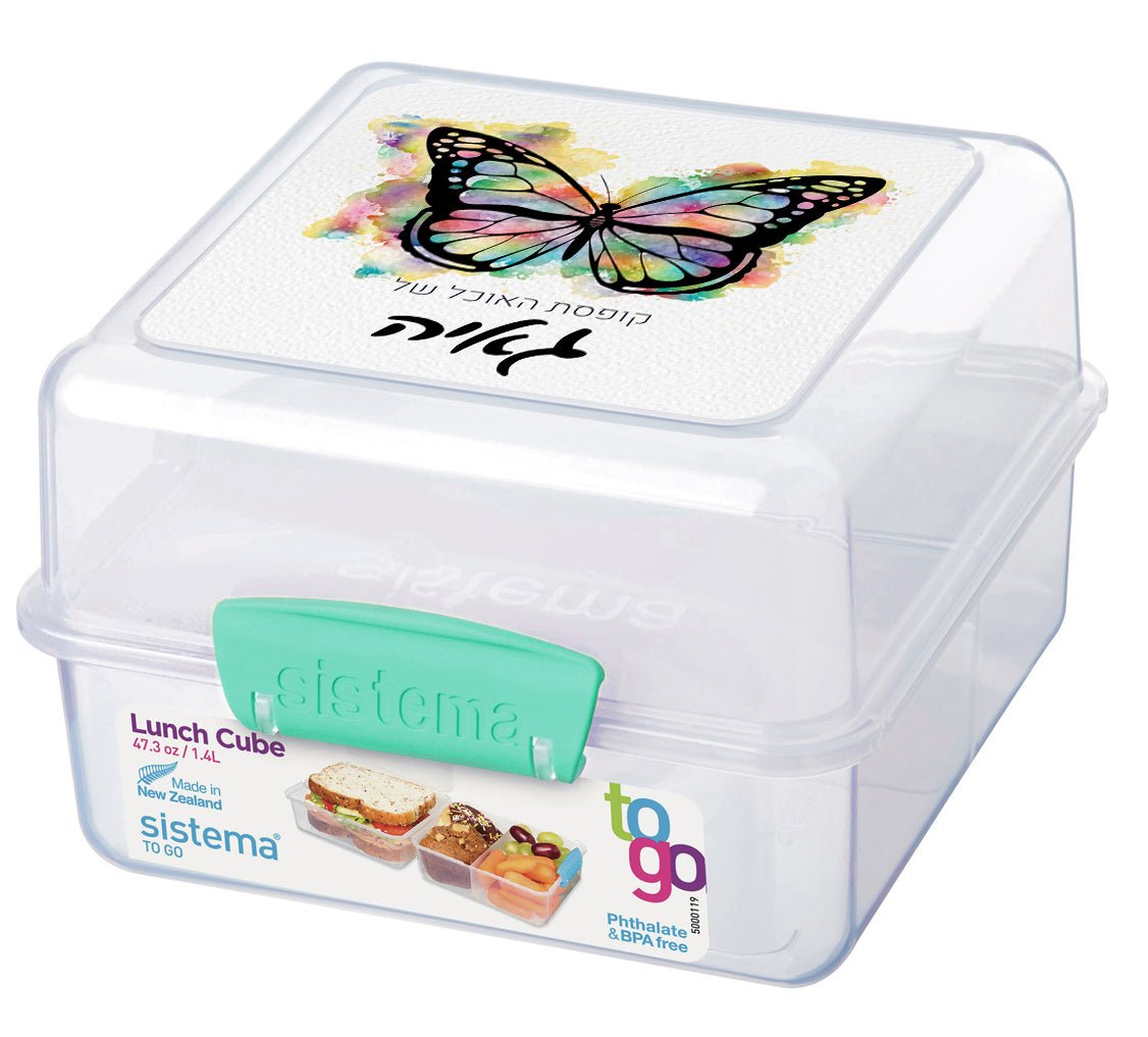 קופסת אוכל איכותית מבית סיסטמה, עם שם הילד/ה.