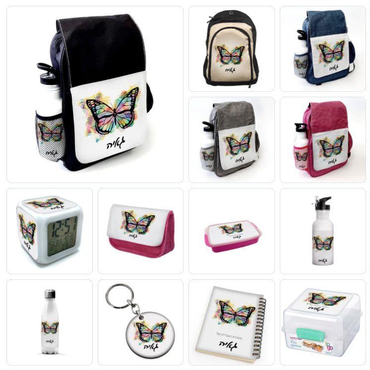סט מוצרים עם שם הילד/ה בעיצוב פרפר