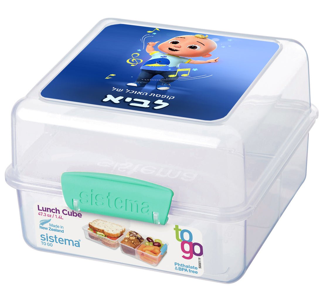 קופסת אוכל איכותית מבית סיסטמה, עם שם הילד/ה.