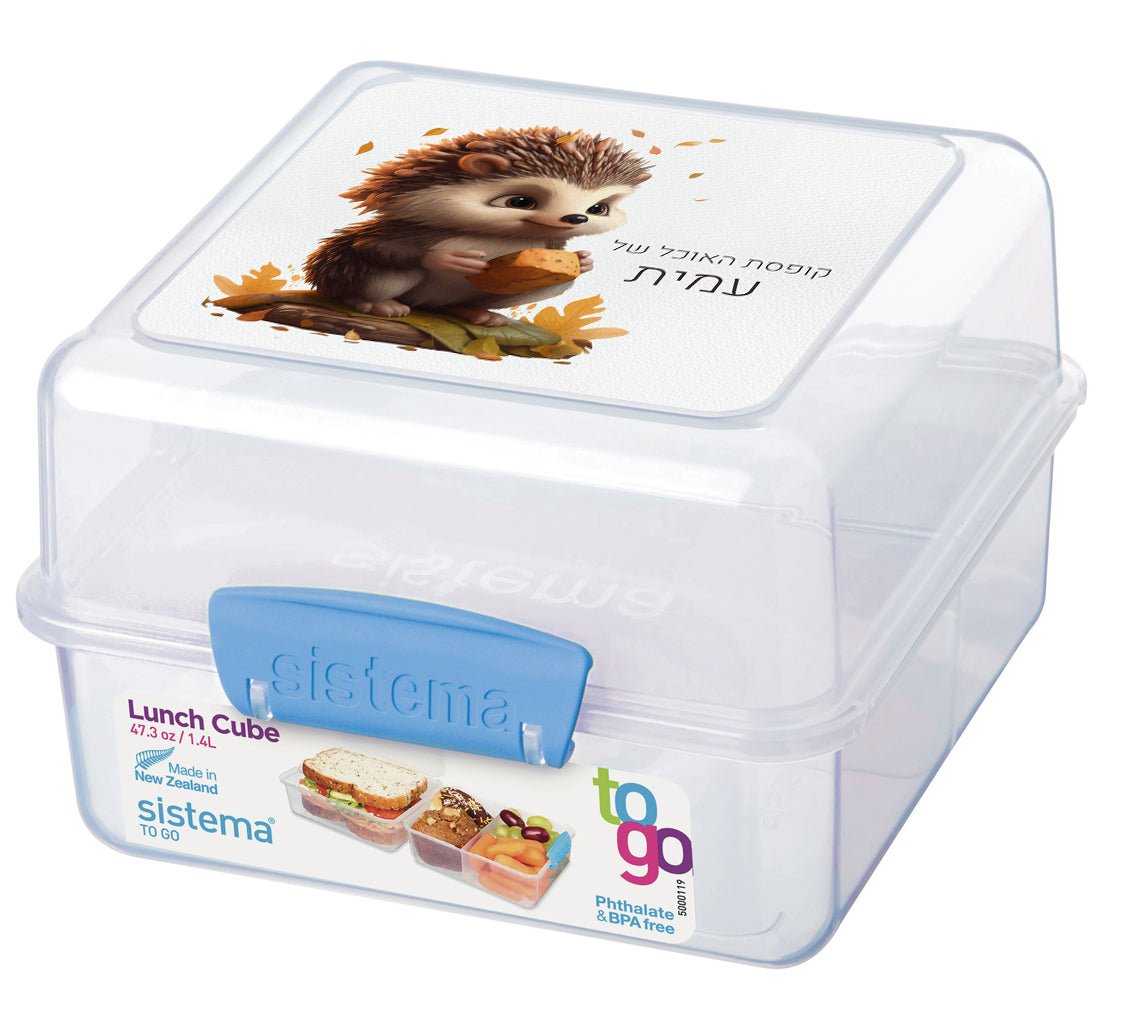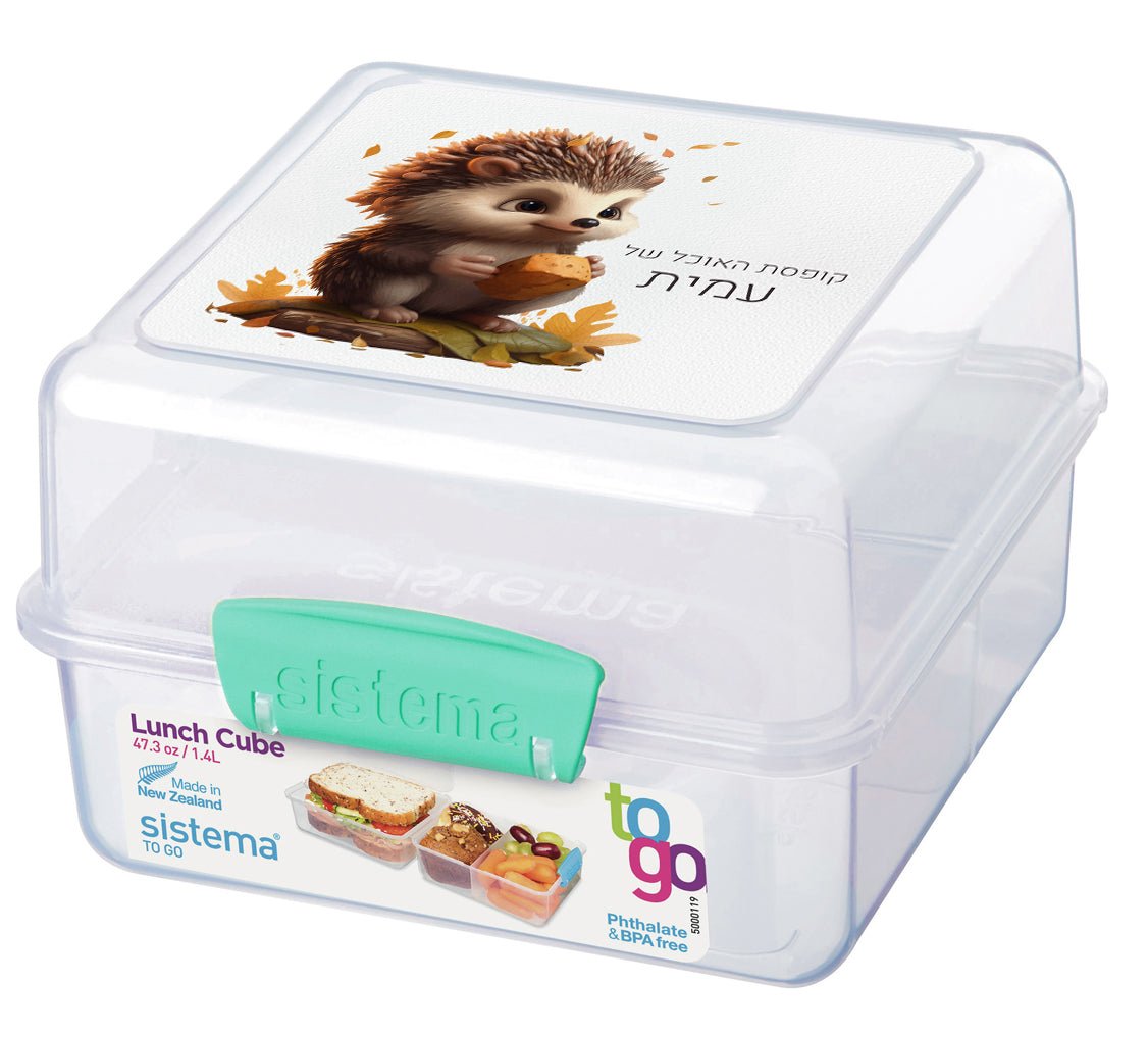 קופסת אוכל איכותית מבית סיסטמה, עם שם הילד/ה.