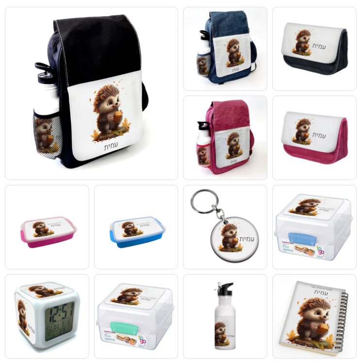 סט מוצרים עם שם הילד/ה בעיצוב קיפוד
