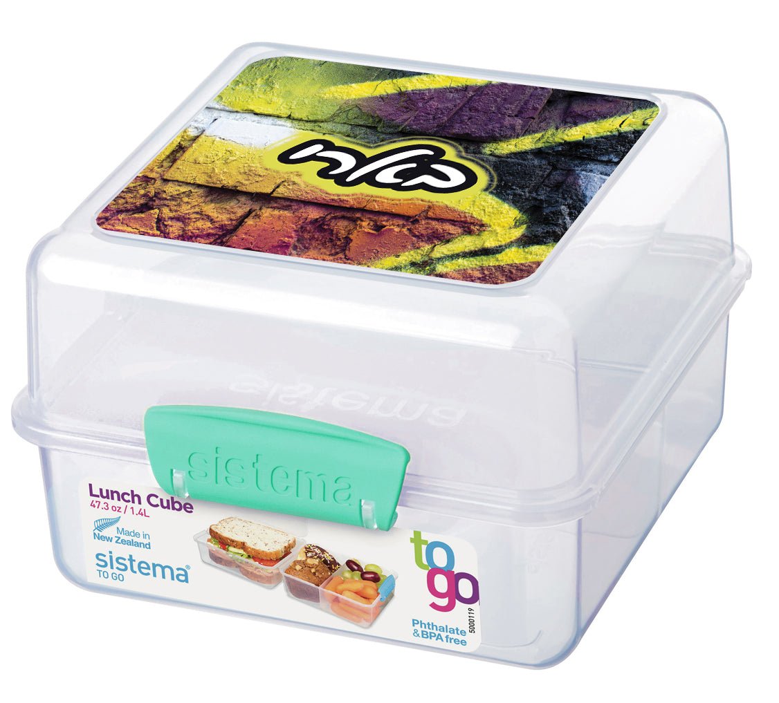 קופסת אוכל מחולקת ומעוצבת במגוון עיצובים עם שם הילד, מבית המותג הניו-זילנדי Sistema