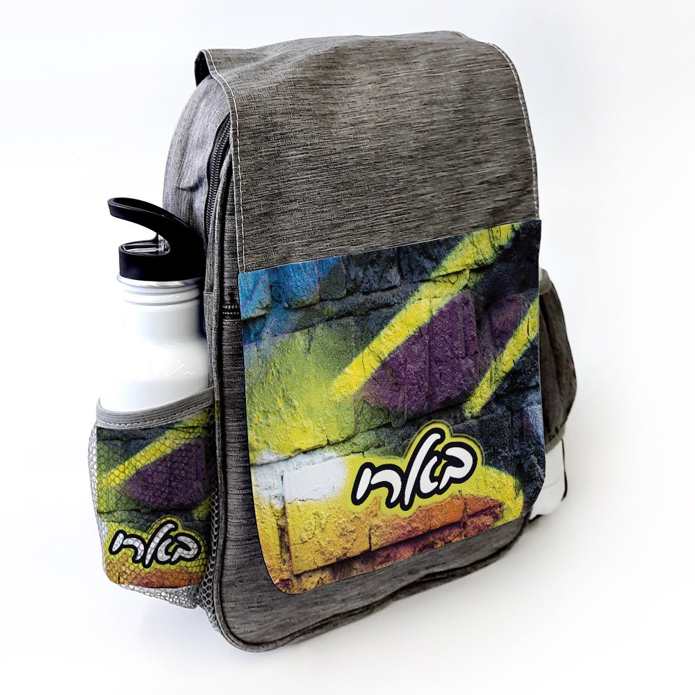 סט מוצרים עם שם הילד/ה בעיצוב קיר גרפיטי