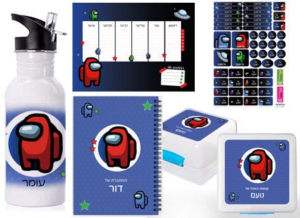 סט מוצרים עם שם הילד/ה בעיצוב "אמונג אס"