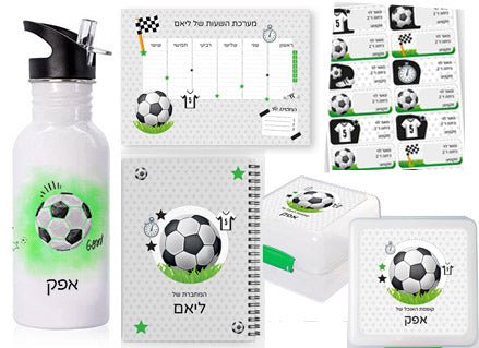 סט מוצרים עם שם הילד/ה בעיצוב "כדורגל"