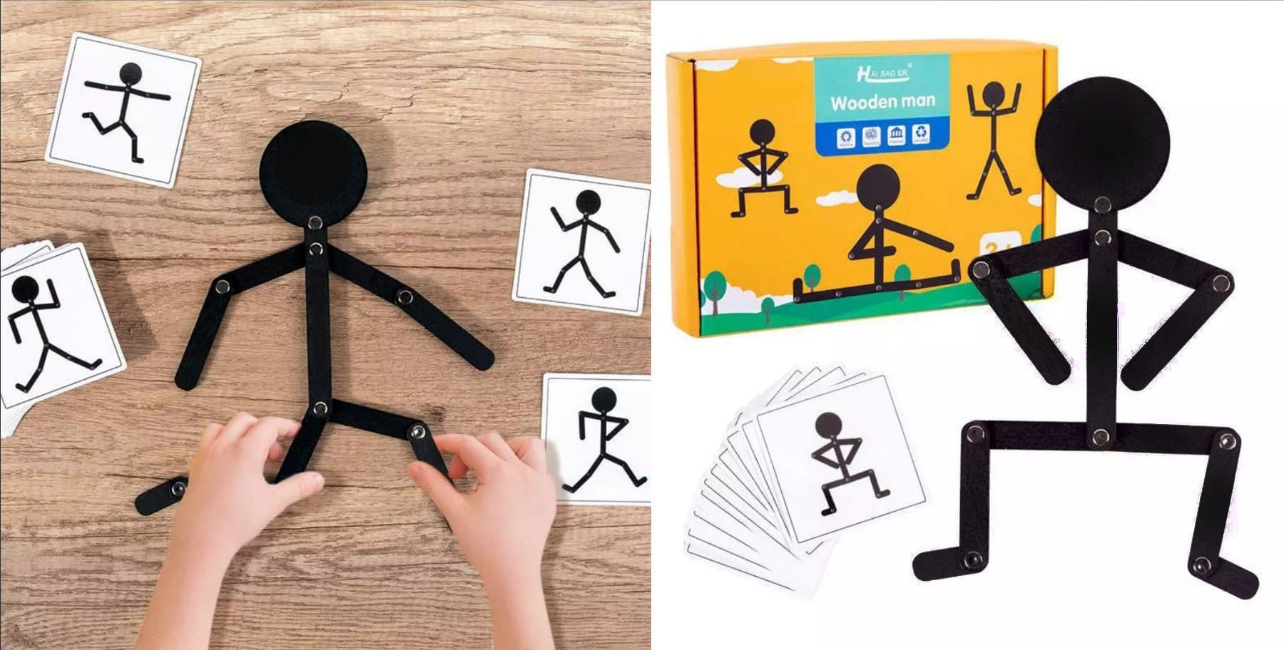 "איש העץ" משחק חשיבה ומיומנות עם מגוון קלפי עבודה ודמות עץ גדולה...